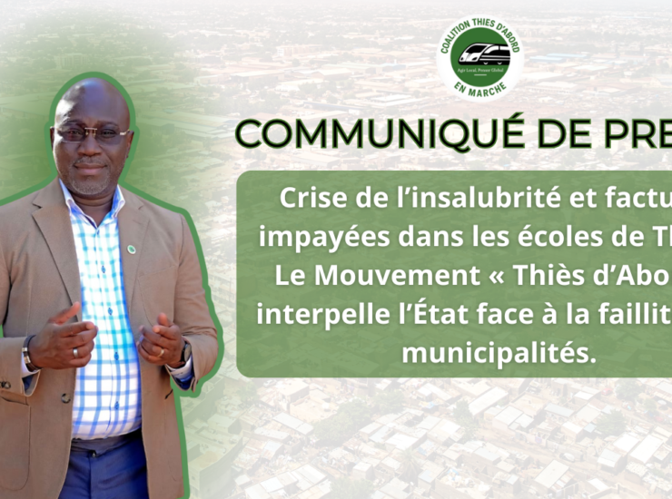 05 Fév Non classé by contact COMMUNIQUÉ DE PRESSE Crise de l’insalubrité et factures impayées dans les écoles de Thiès : Le Mouvement « Thiès d’Abord » interpelle l’État…